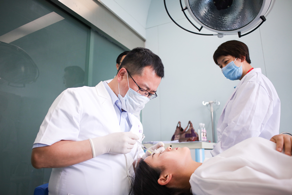 苏州美莱无创美容中心主任林广兴进行注射演示